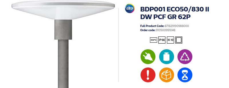 Sistemul de iluminat Philips BDP001 ECO50/830 II reprezintă o soluție eficientă pentru diverse aplicații de iluminat exterior. |