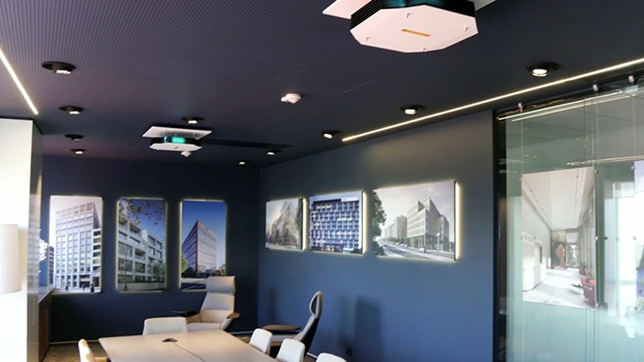 Dispozitivul Philips UV-C cu montaj pe tavan(fals) este proiectat pentru a fi utilizat la dezinfectarea aerului din partea superioară a spațiilor închise pentru o gamă largă de aplicații. Optimizată pentru tavanele joase, distribuția radiației UV-C este în cea mai mare parte realizata la nivelul dispozitivului și deasupra acestuia. Radiația este controlată de reflectoare specifice și de elemente de ghidare. Acest dispozitiv dezinfectează volumul de aer dintr-un spațiu, în timp ce asigură continuitatea activităților cotidiene ce se defașoară sub zona în care dispozitivul este activ.