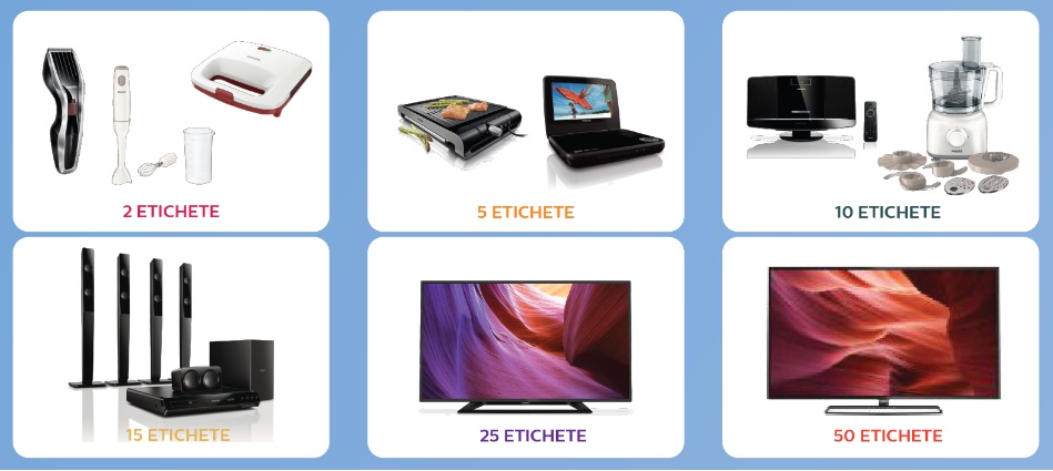 Poți câștiga mai multe premii în funcție de numărul de etichete aplicate pe fiecare cupon promoțional, la alegere dintr-o varietate de premii marca Philips.
