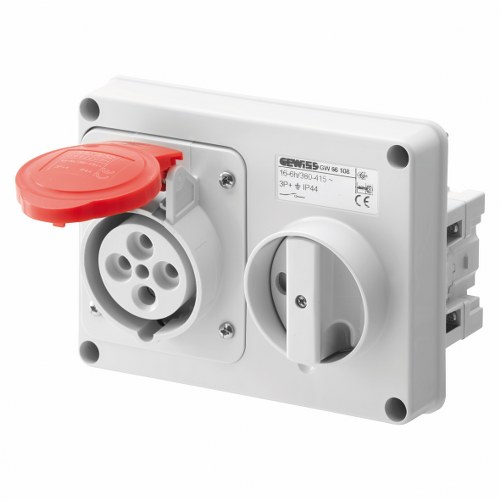 [SRK_WSDESC] => Priza industriala incastrata cu interblocare si port fuzibil 16A 3P+E 400V 6h, Rosu, IP44